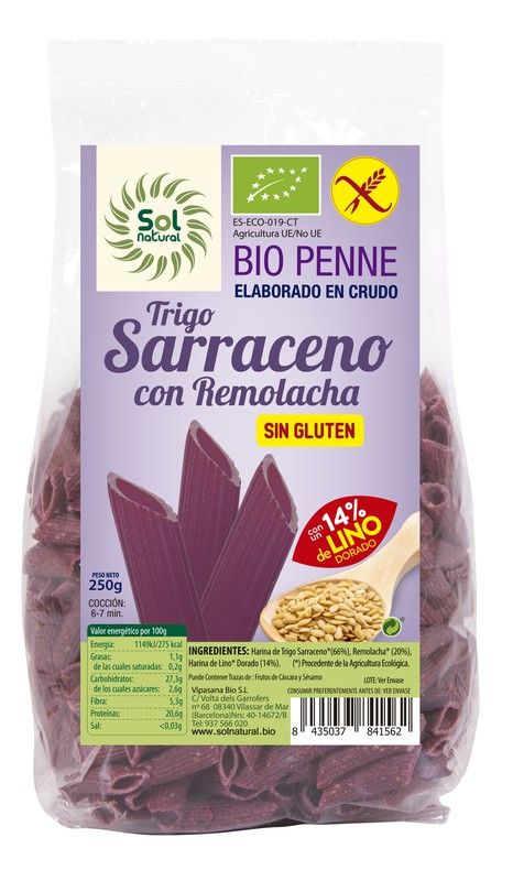 Penne T.Sarraceno Remolacha-Lino Bio S/G 250 G